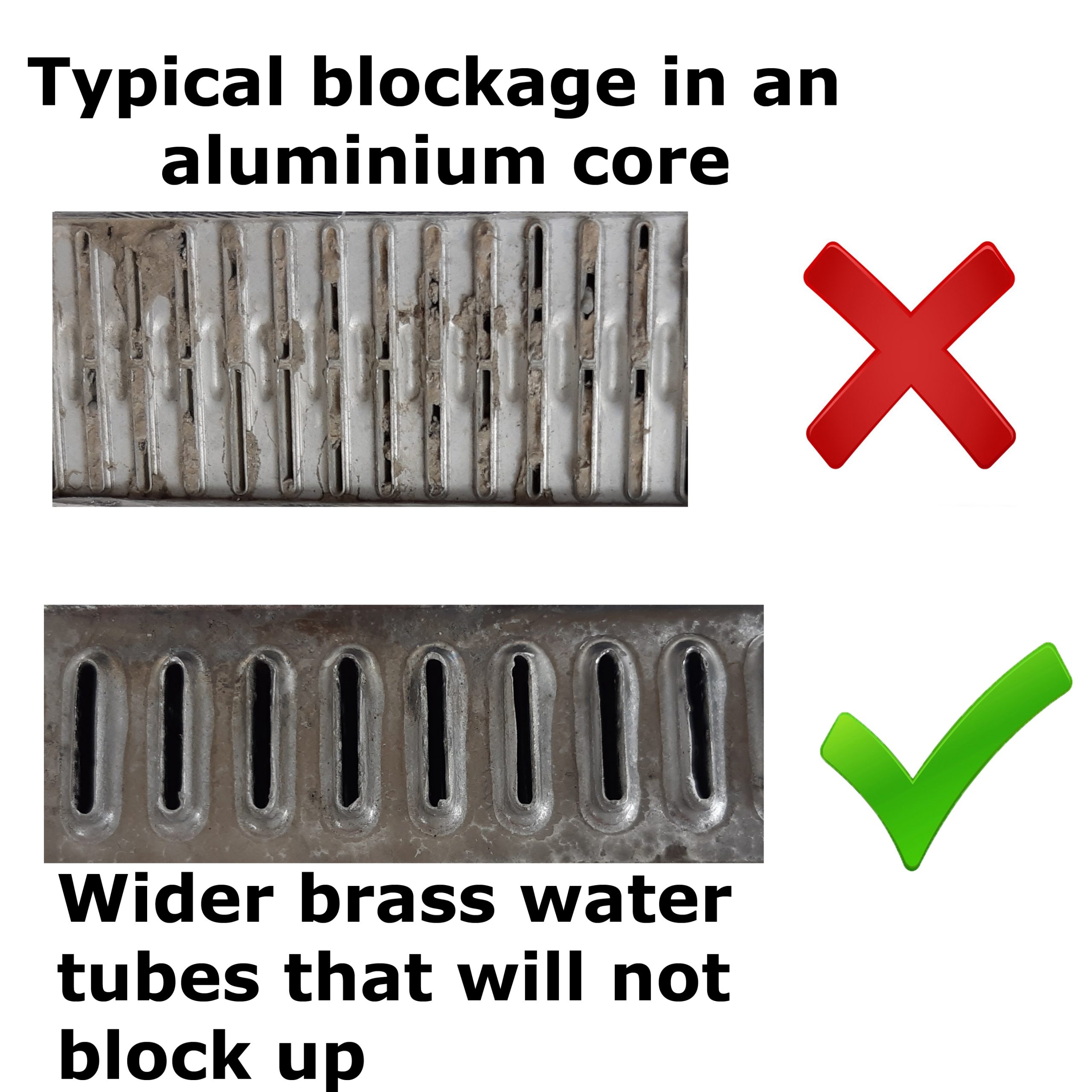 The original heater for your vehicle was made from aluminium with very narrow water tubes, as you can see in the listing picture above. Â Original equipment and cheap, poor quality imported replacements all use this design which blocks up very quickly, easily leaving you with no heat.